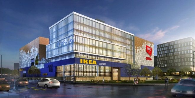 宜家全球較大投資項目薈聚中心上海臨空項目位于福泉路西側、協和路東側、金鐘路北側、北翟路南側,擬建1幢地上8層、地下4層的綜合商辦體??偨ㄖ娣e約43.7萬平方米,其中:地上建筑面積約17.9萬平方米,